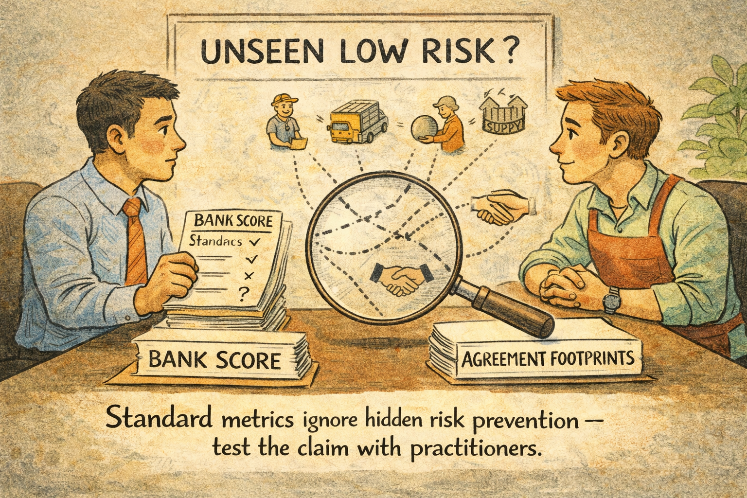 In an earlier post, I explored how agreement quality might be conservatively translated into financial risk—without pretending we can compute it precisely (see From Agreement Quality to Financial Risk). This post is not a conclusion. It’s a preparatory note: a transparent snapshot of my current thinking before I speak with a bank practitioner.